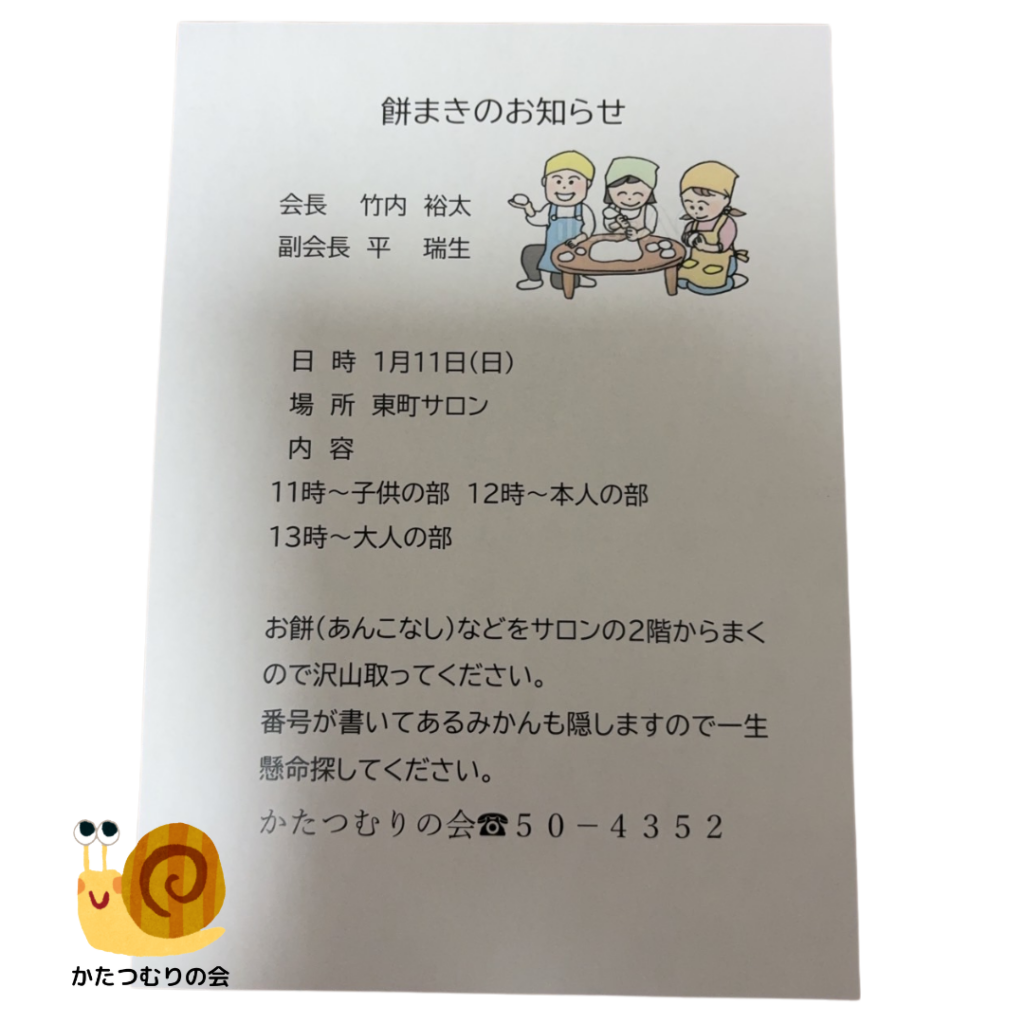 2026年1月11日(日)ふれあいサロン東町にてもちまきを行います☆彡